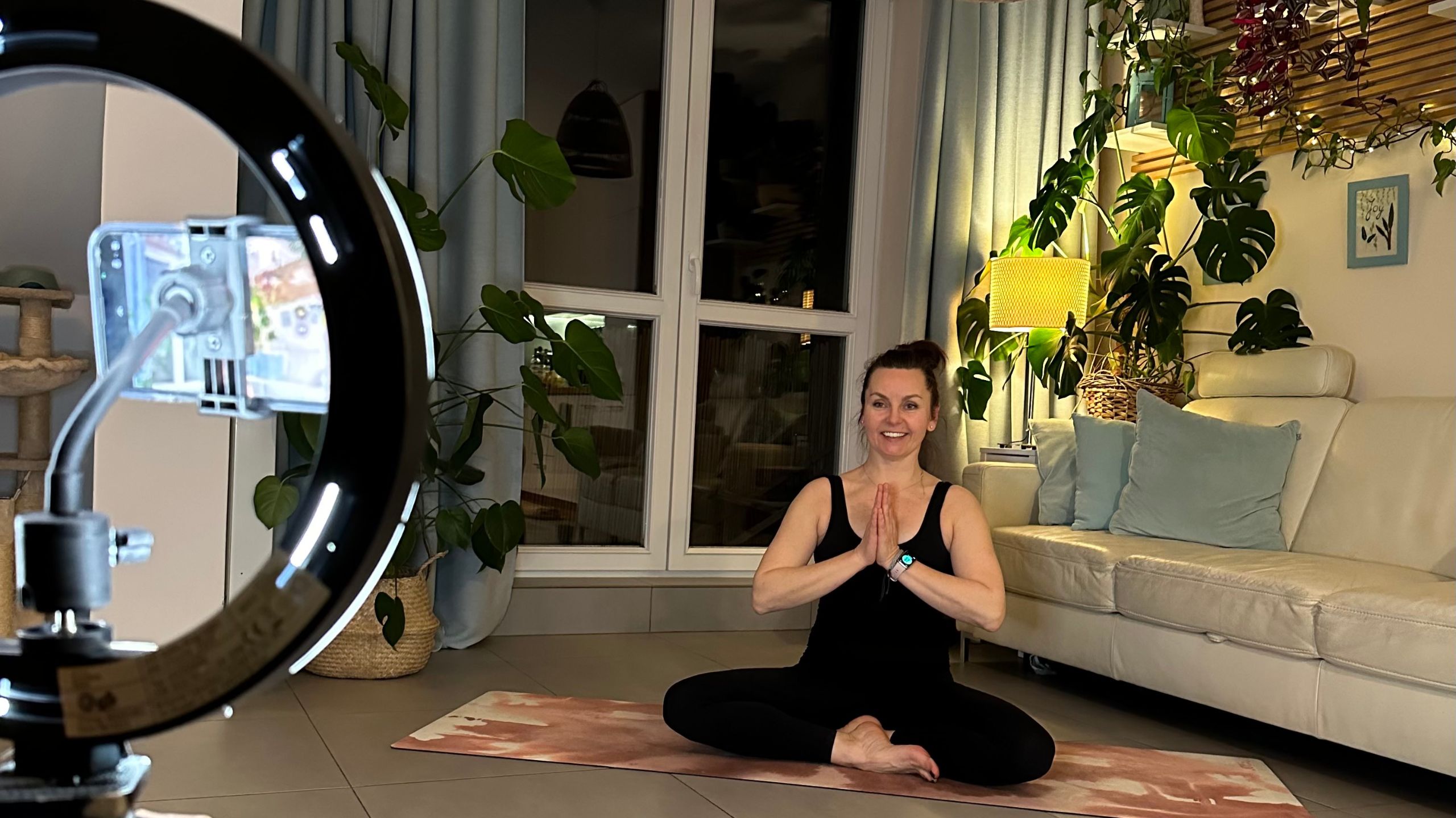 czyli u Ciebie w domu lub tam gdzie aktualnie jesteś. Praktykuj jogę we własnym tempie, dołączając do grupy lub solo podczas sesji 1:1